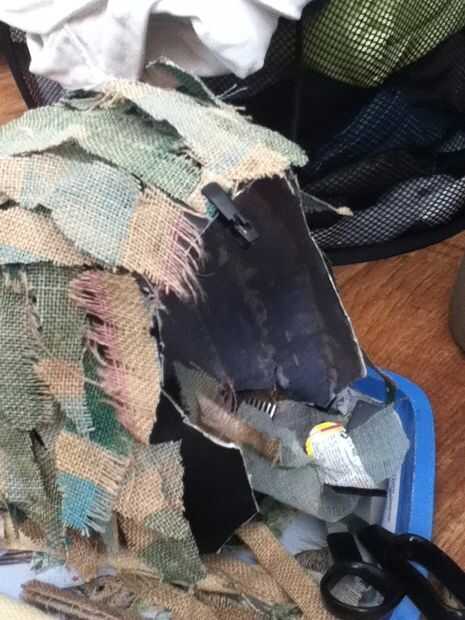 Capas el hessian hasta que alcanzó el borde del casco. La cola mantiene las piezas bien y no he tenido problemas con los pedacitos caen (aunque hessian arrojar fibras mal). Si tienes fibreglassed su casco, entonces usted querrá agregar espuma en el interior para evitar que las astillas de fibra de vidrio (este aún no lo has hecho, pero añadir este paso una vez lo he hecho).