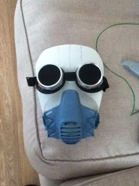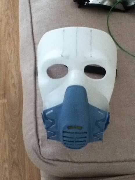 Con la máscara en blanco, gafas, respirador y cualquier otra cosa que desee agregar, marcar con lápiz donde usted quiere las cosas para ir. También he marcado las posiciones de los orificios para EL cable, que será a través de (un poco como un cordón) los agujeros roscados terminada pintura.