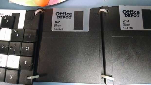 Tomar 4 de los discos y unirlos con 6 de sus lazos de alambre. Para ello, sacando 2 discos, ponerlos lado a lado que va en el mismo sentido y puso lazos a través de la parte posterior de uno y luego el frente de la otra. Esto pone la cerradura cuadrado lazo dentro de la caja terminada. Es más fácil trabajar con ellos en el frente y para lápiz de propósito general cajas que está muy bien y se agregan a la mirada de la utilidad de la caja como un elemento repurposed, pero para este trabajo nos va poner teclas en la parte delantera. Los lazos se van a ser bastante de un obstáculo sin los extremos de la caja.