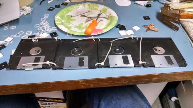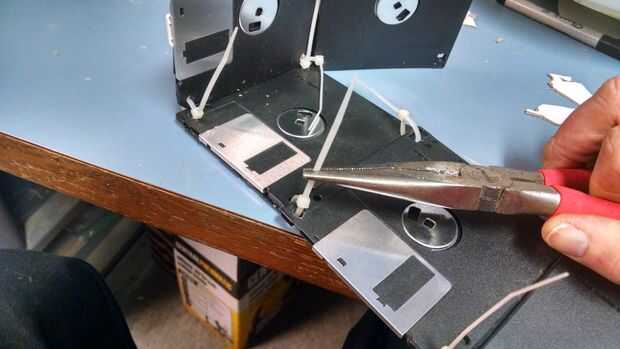 Al tensar los vínculos no tire firmemente, a hacerlo más tarde. Por ahora solo quiere tener 4 discos atados juntos. Estos deben mentir razonablemente planos sobre la superficie de trabajo. Darles la vuelta y prepárate para la diversión comenzar.
