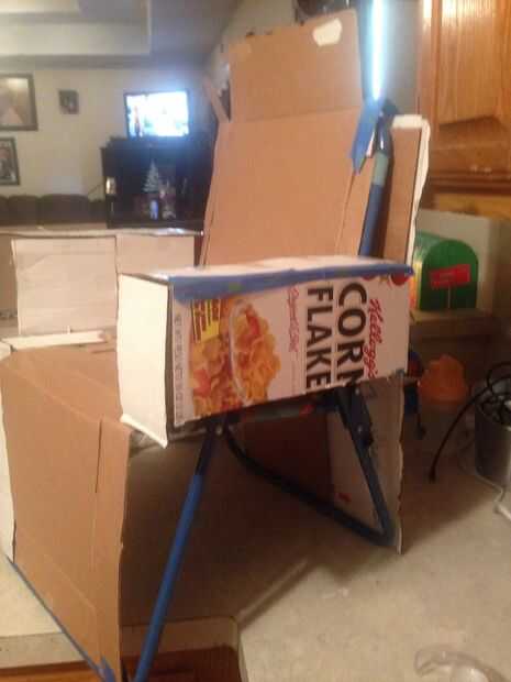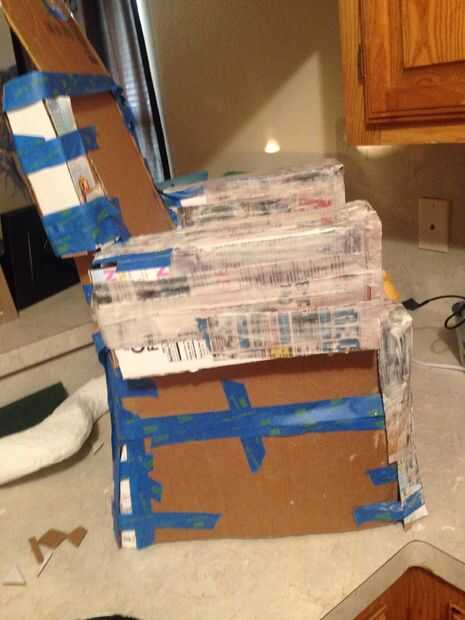 Empezar por encontrar una silla... Cualquier silla de... Grande, pequeño, lo que sea, cubierta ahora con cartón y cinta, hace agradable y robusto!