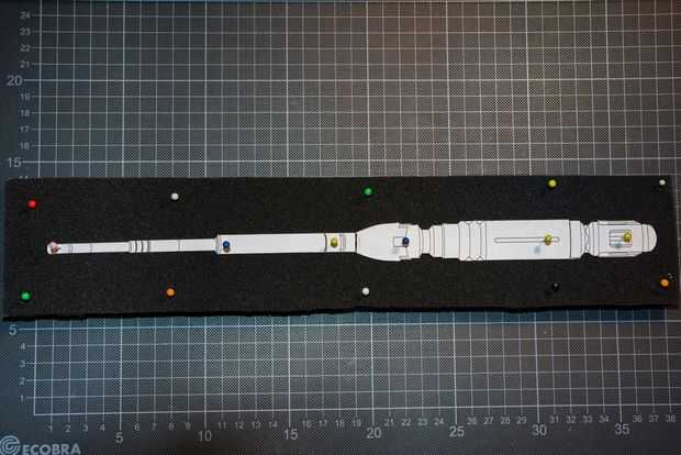Los acolchados de espuma que tengo son aproximadamente de 1cm de espesor. Como la varita es de 2 cm. de altura y protección versátil varita voy a ir con tres capas de espuma, uno como una pieza de la parte inferior y dos más para la conexión.