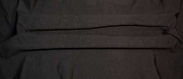 Que apilan las tres tiras de espuma uno sobre otro y les asegura con alfileres ya que necesitaba para reducir la anchura y la longitud de ellas para obtener un 1 o 2 mm amplia brecha a cada lado para tener en cuenta la tela. Esta segunda corrida también se aseguró que todos los bordes perfectamente alineación.