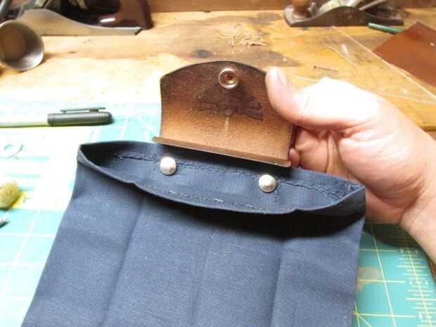El bolso de la lona se lleva a cabo en la bolsa de cuero con broches. Son dos broches masculinos se unen a la bolsa de cuero y dos mujer encaje se unen a la bolsa de lona. Los broches de presión mantenga la bolsa bien en el caso de cuero, pero se pueden deshacer si desea quitar la bolsa de lona para su limpieza o reemplazo.