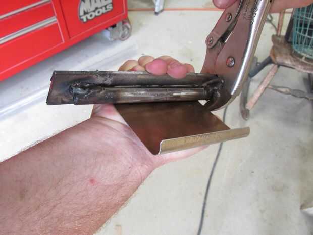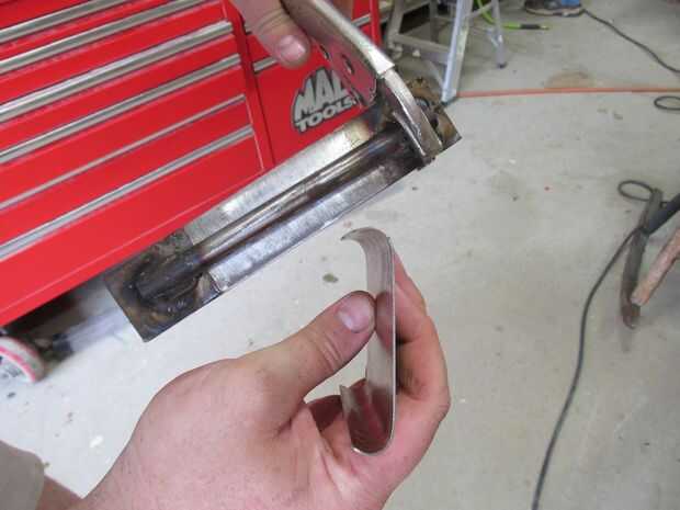 Crear las curvas puede ser un poco complicado facilitar las cosas que soldado una plantilla simple que solía doblar cada lado. Si no tienes acceso a un soldador puede realizar la misma tarea por la Plaza contra un pedazo de material redondo de acero de sujeción en las mordazas de un tornillo de banco y luego utilizando sus manos o un martillo para trabajar la Plaza alrededor de la bolsa redonda para crear la curva.