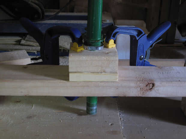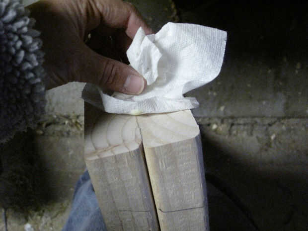 - Línea de la Junta de 26'' y las 2 piezas que son 4'' de largo, uno encima del otro. Pegar las piezas con pegamento para madera.