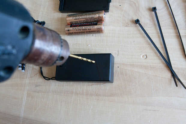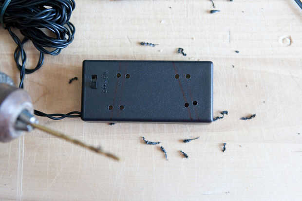 - Perforar 8 (4 pares) a cada lado de las marcas de radios. (Tomar la baterías y la tapa primero!)