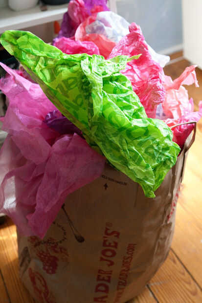 - romper más tiras de papel de seda. (como para rasgarse en una dirección determinada, si no te largas tiras de una manera, tratan de lo perpendicular al)