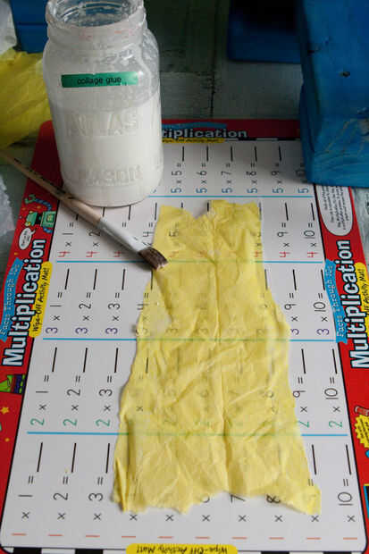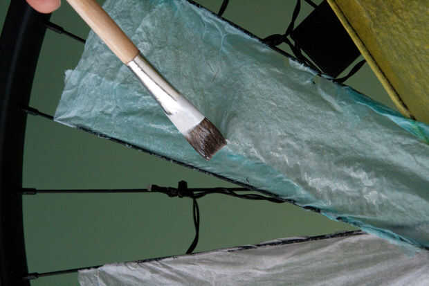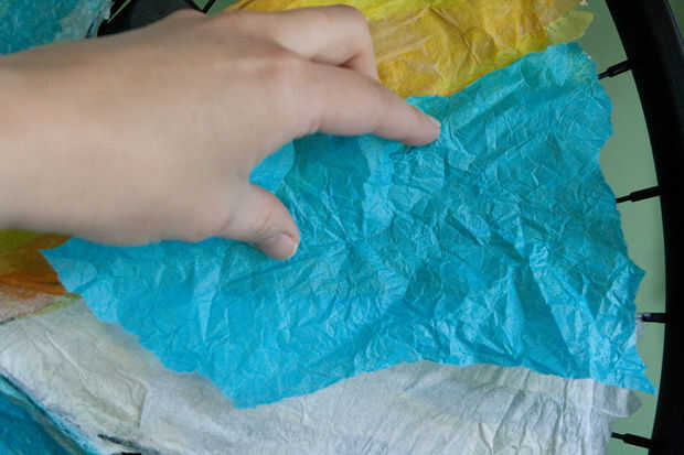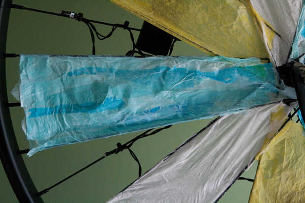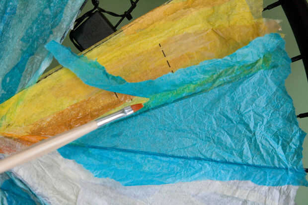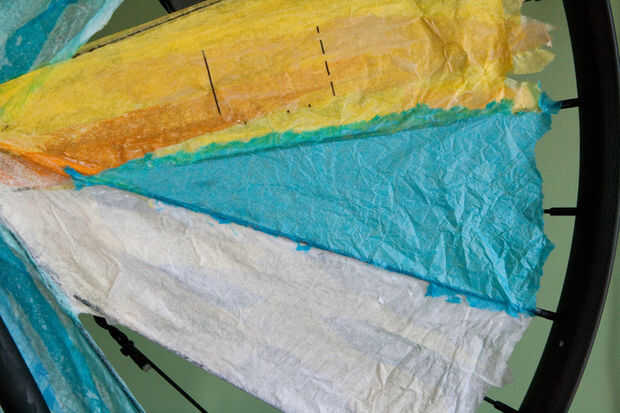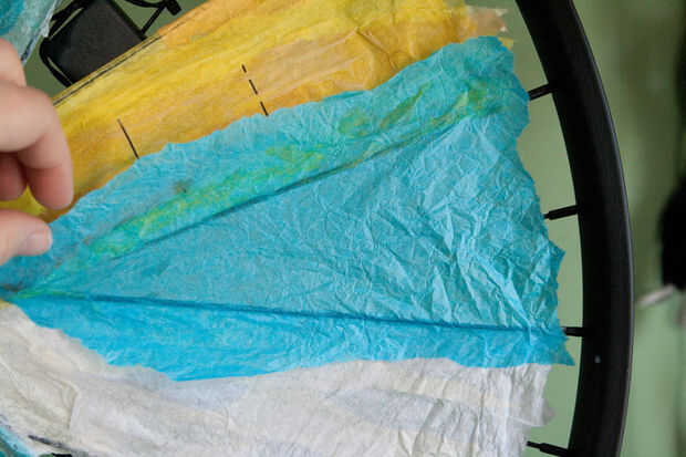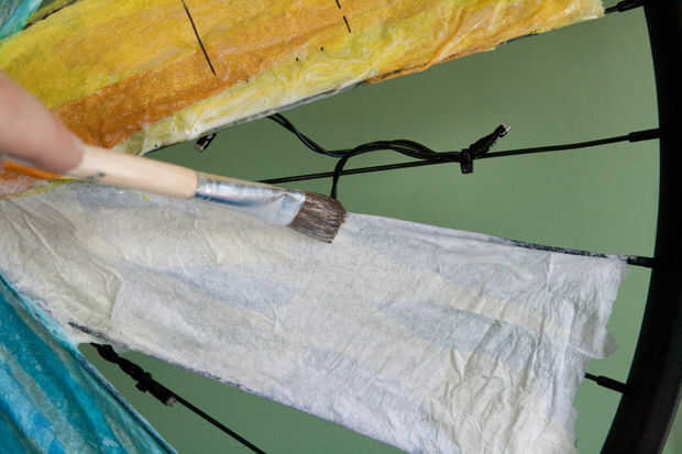 - Estoy utilizando papel de seda entre los radios. El material más fuerte que no inicialmente, pero que se acumula se hace realmente fuerte...