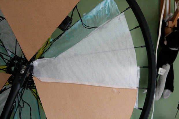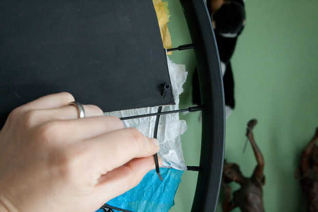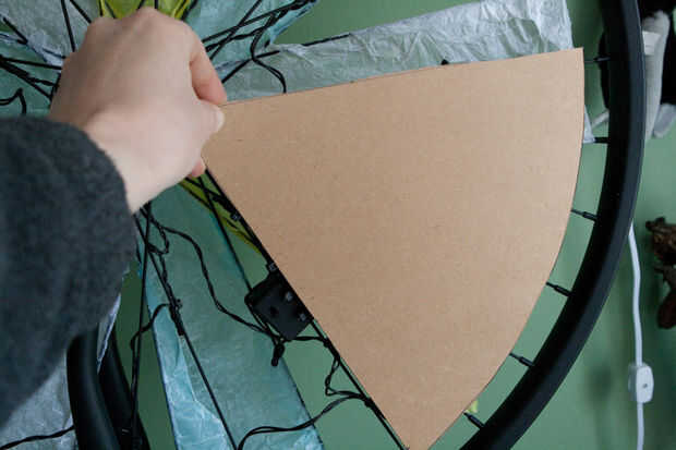 - marcar puntos donde desea el reflector para sujetar a sus radios. (nos va ser uniéndolas con ataduras de cremallera)