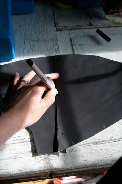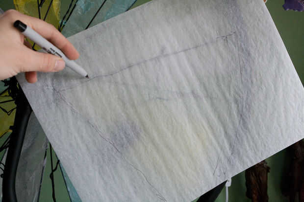 - Utilizando un trozo de papel de calcar, trazar parte de rebanada de pizza grande de sus radios. (no quieres radios donde el encendido apagado interruptor es, y que no cubriendo la espalda entera... así que podemos reemplazar las baterías cuando sea necesario)