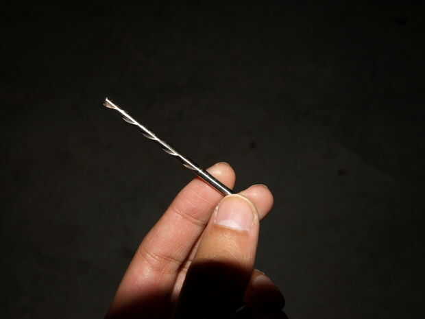 Eres un humano blando que es no tan duro cortar madera. Esto corta hacia el hueso si lo dejas pasar el trozo de madera, así que mucho cuidado. Tengo un número de cicatrices de donde no asegurar mi trabajo correctamente y la broca espiral mellado mi piel. Esta es una de las ocasiones que le sugiero usar guantes por si acaso ya que ofrece protección extra un poco.