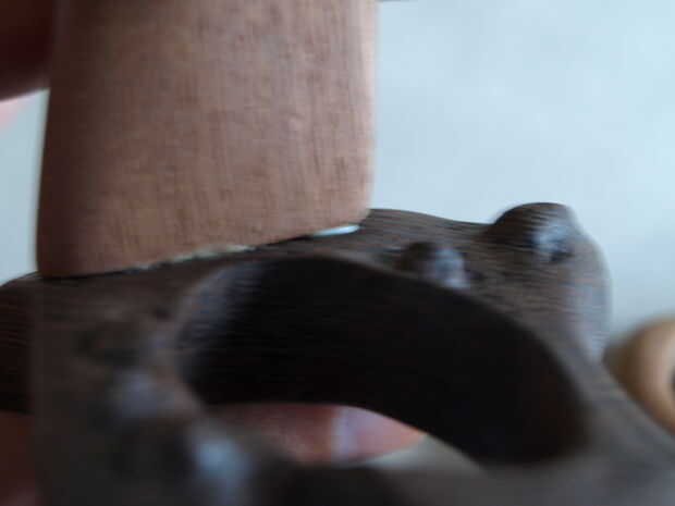 Justo como antes, al final de la nariz y el lugar donde va la nariz con pegamento de la capa. Como usted no puede fijar esto, especialmente después su sido lijadas, vas a tener que sostener contra algo para mantenerlo en su lugar y luego dejarlo solo. En serio, dejarlo solo durante la noche.