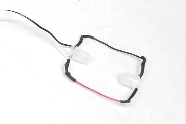 Doble los terminales de cada LED hacia opuestos lados y conectarlos en paralelo terminales negativo conectados al cable negro, terminales soldadas al rojo positivo. Esto crea un rectángulo rugoso que encaja en la esquina de la recepción montaje Junta.
