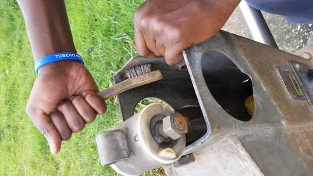 Hanagura neza aho ushyira sitika mu ipompe (ukoreshe uburoso bw'icyuma niba hari umugese, cyangwa ukoreshe ubusanzwe niba hari ibyondo guso) nyuma uhafotore.