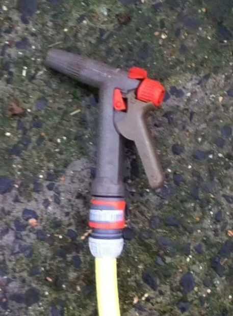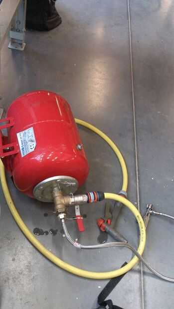 Publicar el acoplamiento al recipiente de presión, coloque la manguera de jardín para el acoplamiento, ahora llene el tanque con agua y coloque la pistola de la manguera en la manguera de jardín.