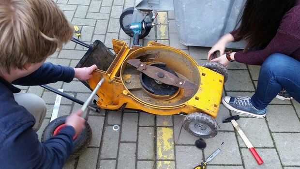 Paso 4: Cambiar las ruedas de la cortadora de pasto con las de la cesta de consumo