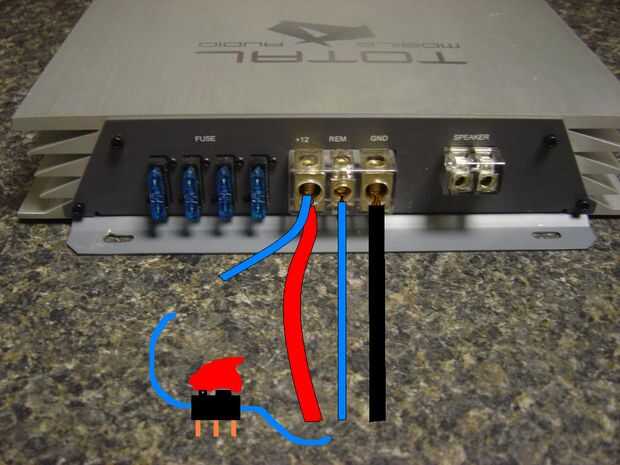 5) ejecute cable desde el interruptor hacia atrás al amplificador.