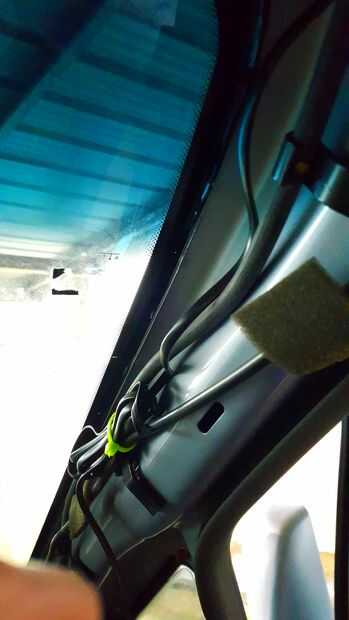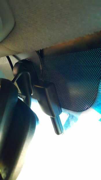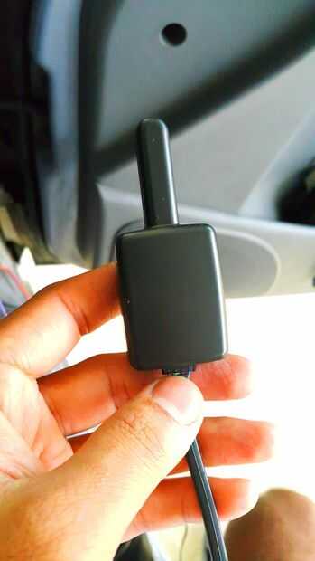 Después de limpiar el parabrisas, me pegué la antena detrás del espejo retrovisor. Envían el cableado hacia abajo del pilar del lado de conductor.