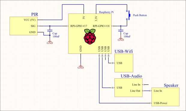 Pero ten cuidado con lo USB dispositivos faltan en el esquema de Fritzing. En el otro esquema puedes ver que la potencia del altavoz está conectada a uno de los puertos USB de la RPis. En mi generación la potencia del altavoz está conectada directamente a 5V.