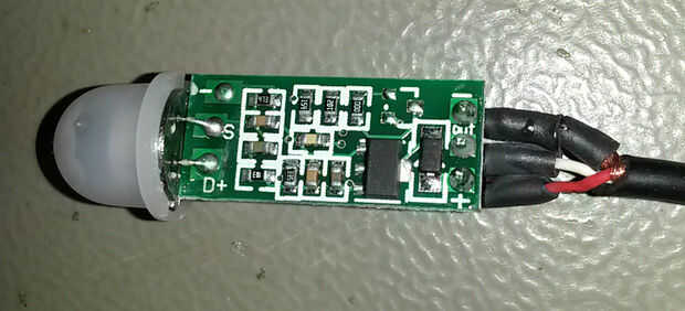 Como dijo utilicé un HC-SR505 pues es pequeño.