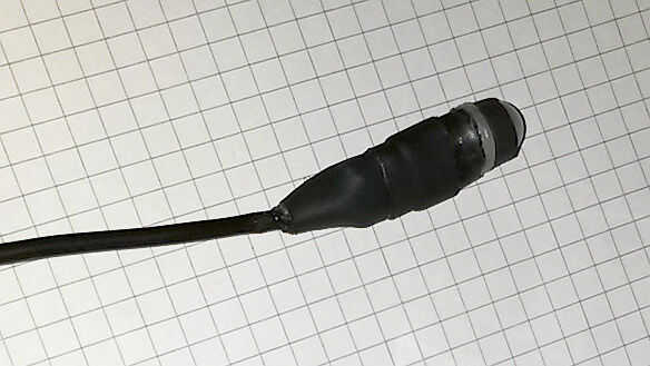 Así que yo primero había soldado un viejo 3pin vieja de auriculares Cable a él. Que primero medimos como "suficientemente largo". Era cerca de 2m pero recomiendo no exceder 5m. La resistencia del cable podría ser mucho para una entrada limpia alta en GPIO, al lado de un montón de otros efectos mal usando cables largos.