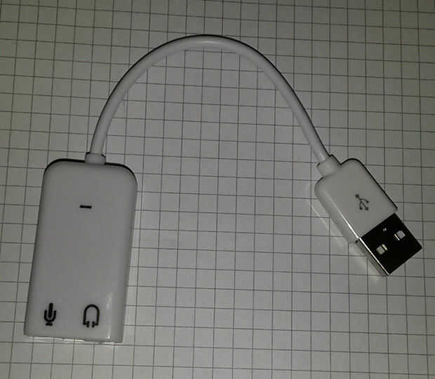 Debe ha conectado la tarjeta de sonido USB ahora mismo, si no el poder bajar, conectar, reiniciar.