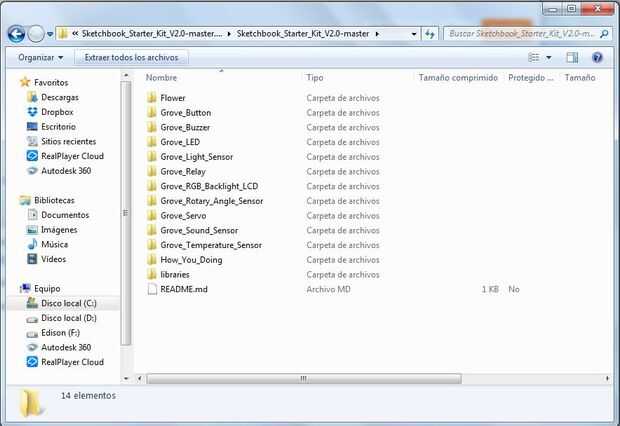 Copiar el contenido de la carpeta a la carpeta de Arduino (la mayoría de los casos bajo la carpeta de mis documentos).