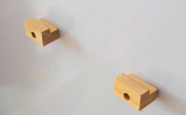 Instalar dos bloques de madera a la pared con tornillos y tarugos incluidos. Asegúrese de que son bloques de madera en la dirección correcta y el mismo nivel.