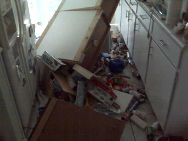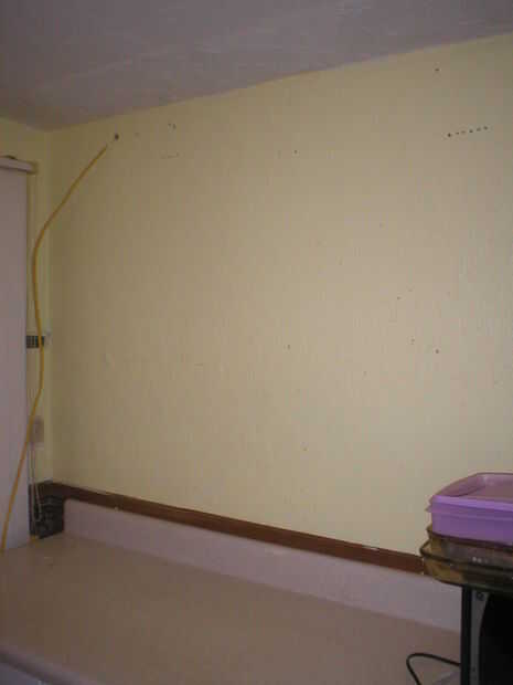 Un poco de historia, nuestra casa es de bloque de hormigón y la pared, en que estos gabinetes deben instalarse es el interior de una pared exterior de hormigón cubierta con listones tiras, dos capas de roca de hoja y 3/16" espesor acabado rugoso. Era obvio que colgar los gabinetes con tornillo de madera a los listones no era una gran idea para que mi plan aquí es para los gabinetes de anclaje en el hormigón con expansivas, un montón de expansivas.