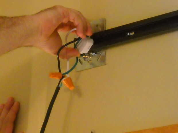 3. en la parte plugless la extensión corte Utilice tuercas para alambre para conectar los cables a los correspondientes cables en el conector de alimentación de la pista - verde con verde, blanco con blanco y negro con negro.
