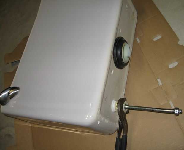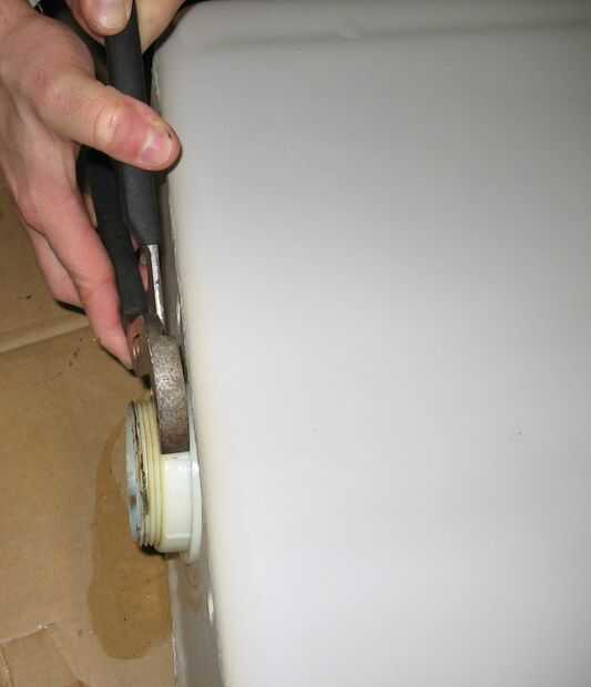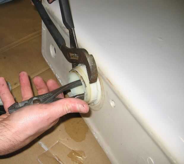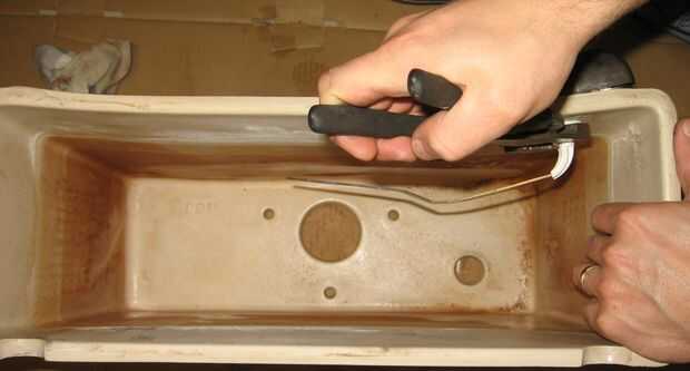 Retire la válvula original del tanque y todas las partes. Para eliminar este tipo de tubo de desbordamiento funcionó mejor para insertar pinzas por la parte inferior del desbordamiento tubo un asimiento la tuerca en el exterior mientras gira el tubo en sentido horario. Cuando quitar la manija de descarga recuerda que lave de tuerca es un hilo de rosca inversa.