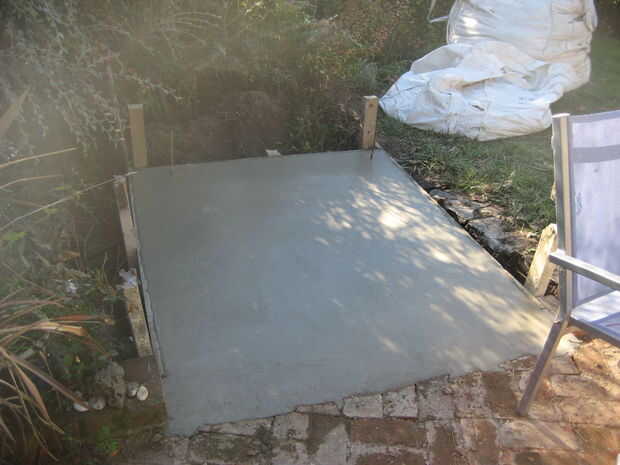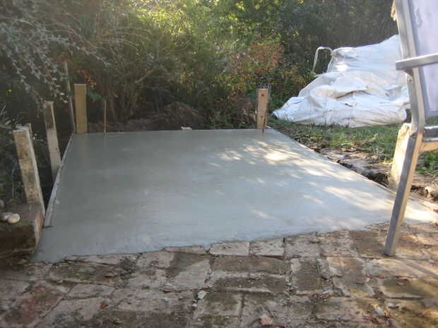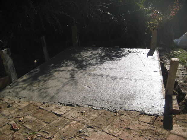 Cada mezcla se vuelca en el boxeo y extienda y escombros atascados en, creo que tardé 5 x cargas de mezclador que esta losa.