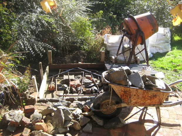 También chatarra de acero se lanza para reforzar, no estamos construyendo una casa y no habrá inspectores de construcción así que solo tiro allí, toda la basura que tienes en apuntalar algunos de los bares con piedras por lo que no están simplemente sentados en la parte inferior.