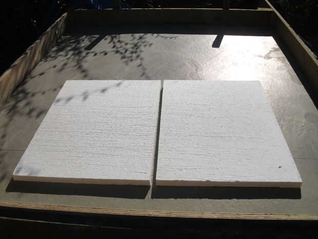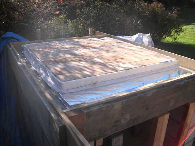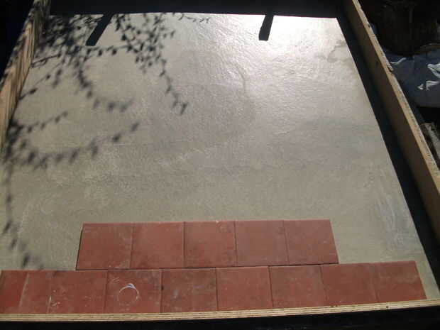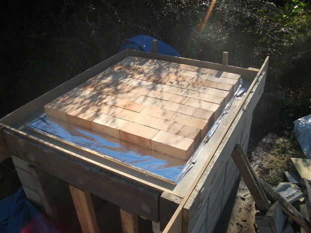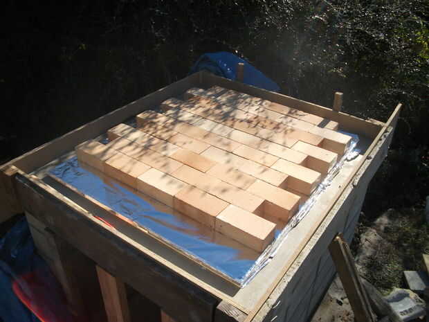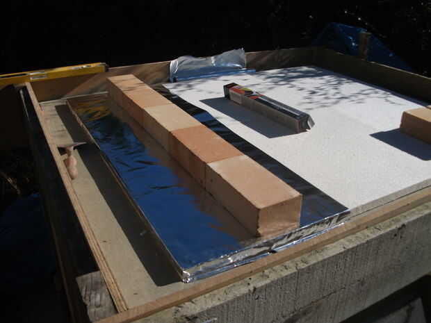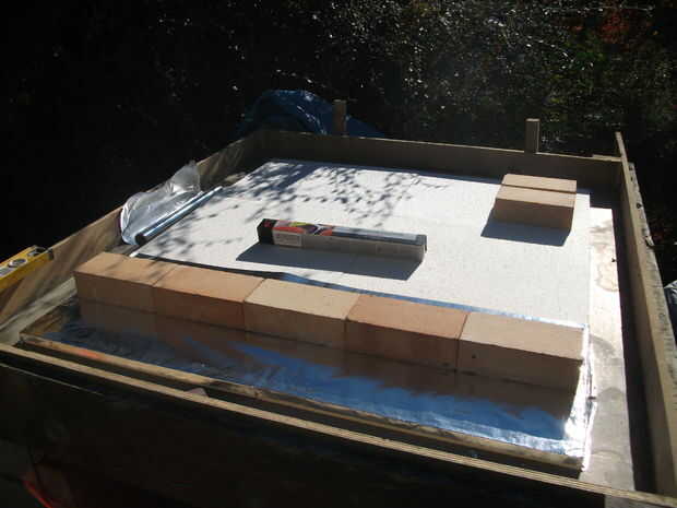 Tablero de fibra crematic es lugar entonces en la losa, luego HD papel y fuego ladrillos puesto seco en la parte superior.