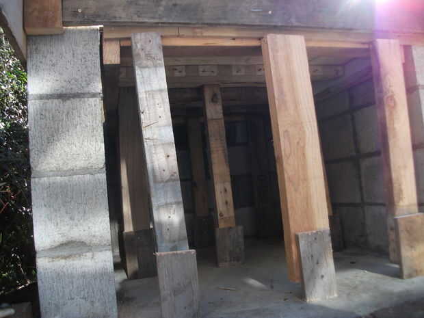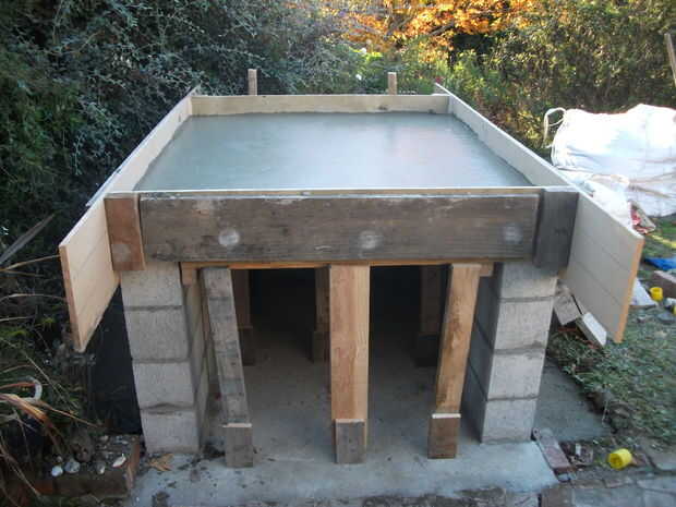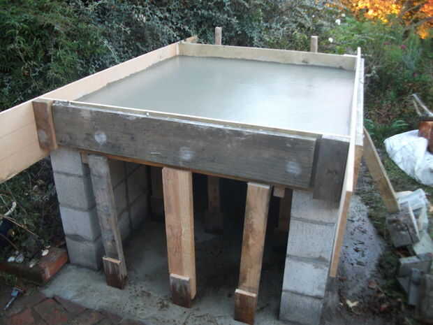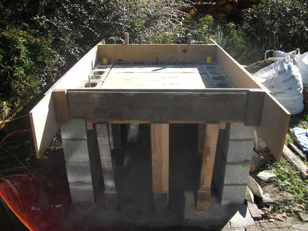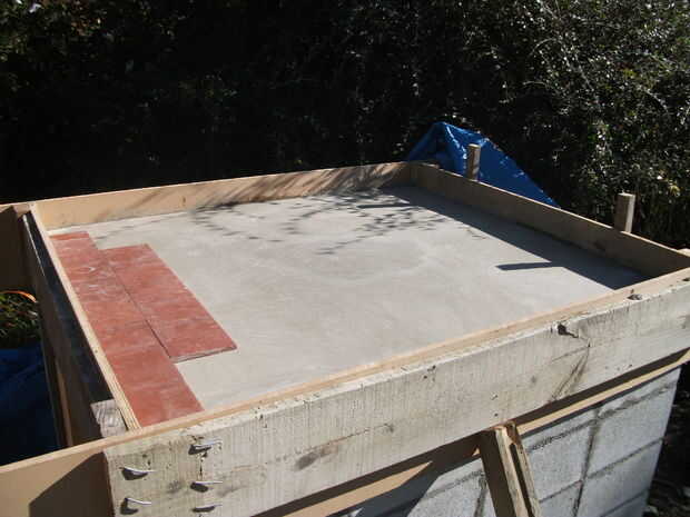 Primera losa es apoyada hasta la marca de 100 mm y la izquierda durante unos días curar...