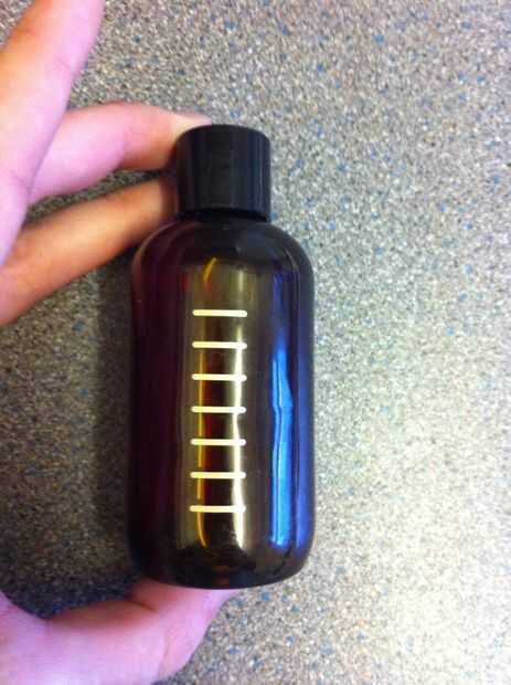 Este es el recipiente use para sujetar el combustible (quemar el penique de la estufa) es una antigua botella cosmética he pinchado a mi esposa, tiene 100ml de combustible.