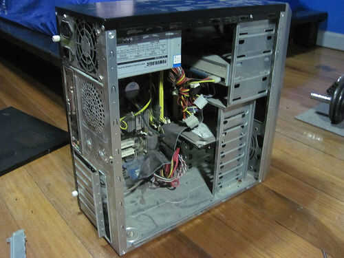 Ahora, puede empezar a quitar el tornillo que bloquea su caso con el destornillador. No tienes que desenroscar cada cosa, a lo lado. Pero asegúrese de que se desenrosque la parte hueca de la computadora, usted puede determinar con facilidad esto mirando a través de los gases de escape.