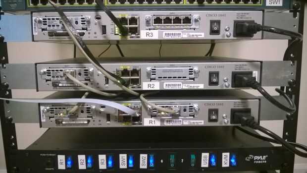 Mi base era un kit de eBay, por unos $300 que contenía 3 routers, 2 interruptores, cables y rack. Sólo tienes que buscar "CCNA Lab" en eBay y puede encontrar muchas opciones.