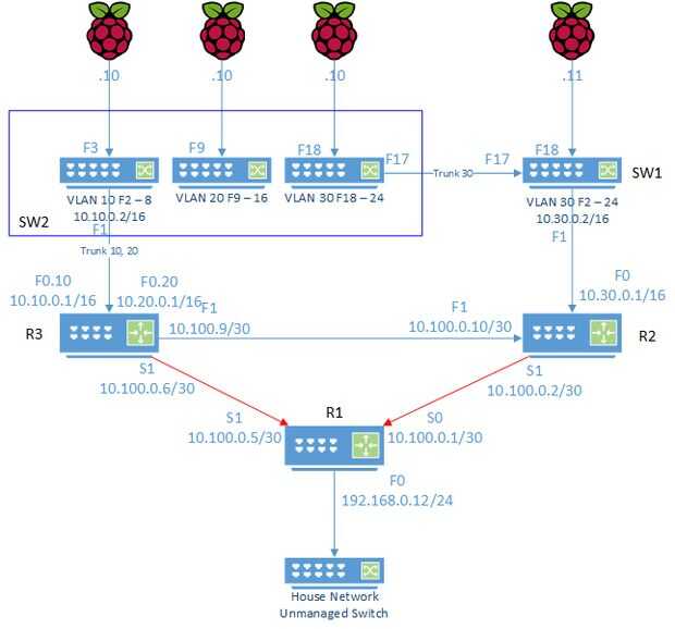 - Frambuesa Pi 03 en 10.30.0.10/16 (en la VLAN 30 interruptor 2)