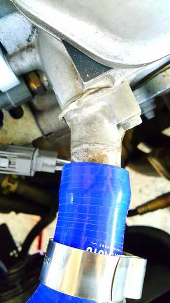 mangueras de instalado de fábrica del OEM en el Trajet 2000 son tiesas, crepitante y fallará! Tiempo para hacer reemplazo proactivo!Paso 1: Quitar la vieja manguera. Debido a la edad y el calor, la manguera vieja fue firmemente adheridos a los pezone