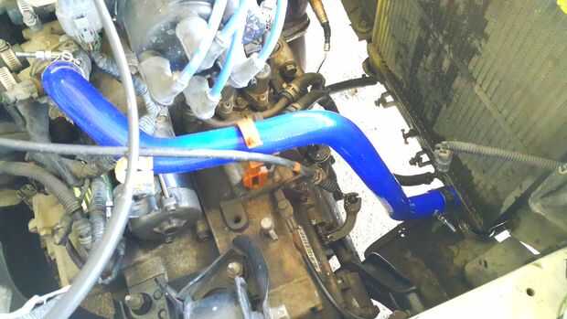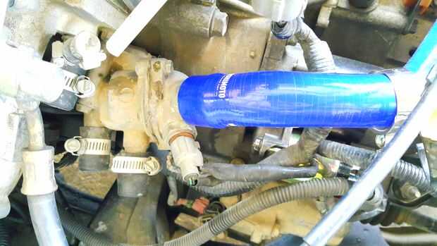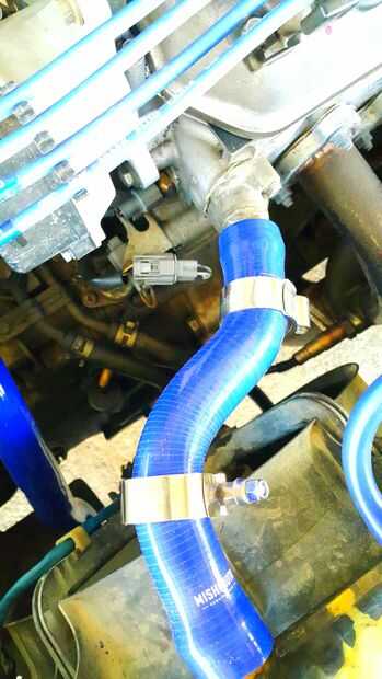 Las nuevas mangueras se deslizaron en fácilmente y las abrazaderas se utilizan para asegurarlos.