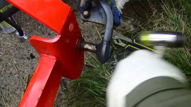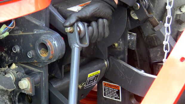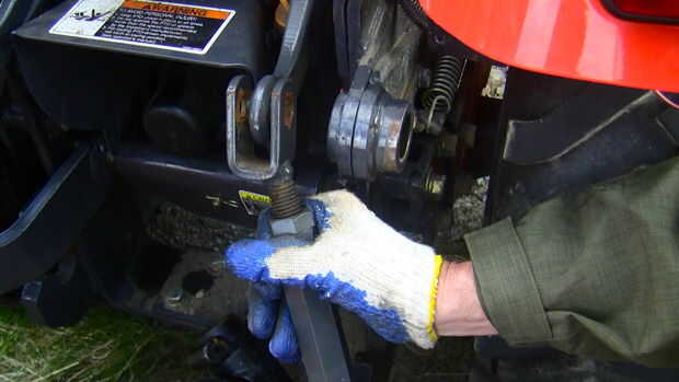 Los dos comprobar cadenas ahora pueden ser montadas en el lugar. Probablemente será necesario alargar o acortar las cadenas para conseguir que se ajuste. Más tarde tienen que ajustarse para evitar que el soplador de nieve balanceándose de lado a lado mientras viaja o de funcionamiento (consulte el paso posterior).