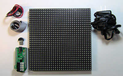 ![]() | Tripas PIXEL incluye una matriz de LED RGB de 32 x 32 IOIOMint Junta + shield de matriz de LED, Bluetooth dongle, cables y fuente de alimentación. | |