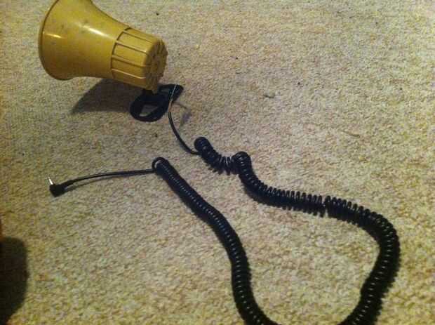 tomar un megáfono normal y convertirlo en un dispositivo espía de oído biónico.Obtén el mismo megáfono aquí para construir su propio!Usted también necesitará un conector de audio de 1/8" y un par de auriculares/audífonos. Algunos cables y herramienta