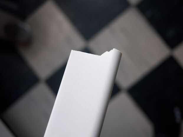 OK, así que no es perfecto, no es apropiado. Ahora puedes ir y venir de la puerta de entrada a su zona de corte como sacar pequeños trozos hasta que encaje.