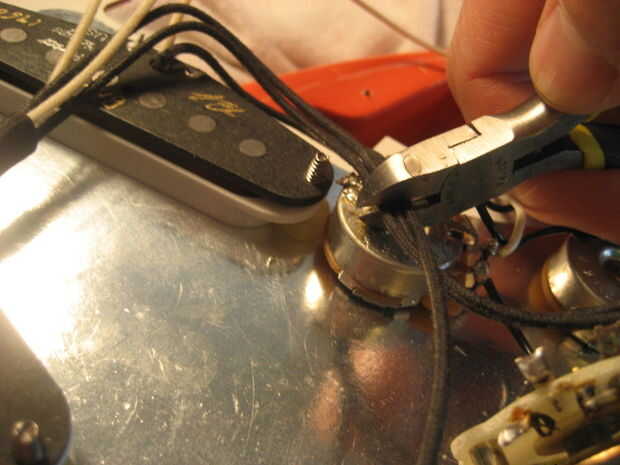 Recuerde que los cables negros se suelda en la parte trasera de la olla de volumen, cortar tan cerca de la mitad de la olla de volumen.