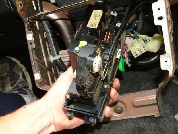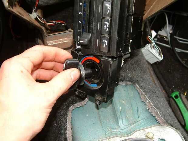 Examinar la parte posterior de la unidad donde instale los cables de control a la unidad. Se elimina esta sección para facilitar el acceso a la unidad. Retire la perilla de control de temperatura tirando hacia afuera. Retire los dos tornillos que sujetan la carcasa de cable de control a la unidad de control de clima. La caja de cable de control debe pop fuera de la unidad. Si no es así. dan un toque poco a fomentarla. La unidad de control de clima quitado en todo su esplendor.