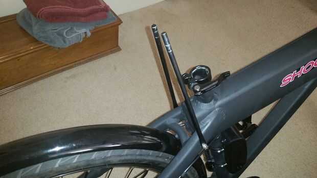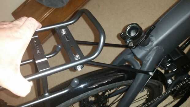 Fije los soportes que vienen con el rack Racktime con los tornillos originales. Nuevamente los tornillos a media vuelta para dar los soportes algún juego. SI SE SALTA ESTE PASO, PODRÍA TIRA LOS HILOS!