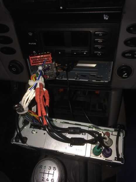 Ahora empezar a empujar el extremo negro y rojo del arnés para que entra el corte en el lado izquierdo del tablero de instrumentos. Utilice sus dedos para sentir esto, teniendo cuidado de no piel en el manguito de montaje. Mientras está haciendo esto, usted necesitará levantar el cabezal. Le sugiero que arregle los cables cautivos para que mienten en la parte trasera de la unidad principal. También puede necesitar tirar el cable USB cautivo que pesca a través para que el cabezal no enganchar en él.